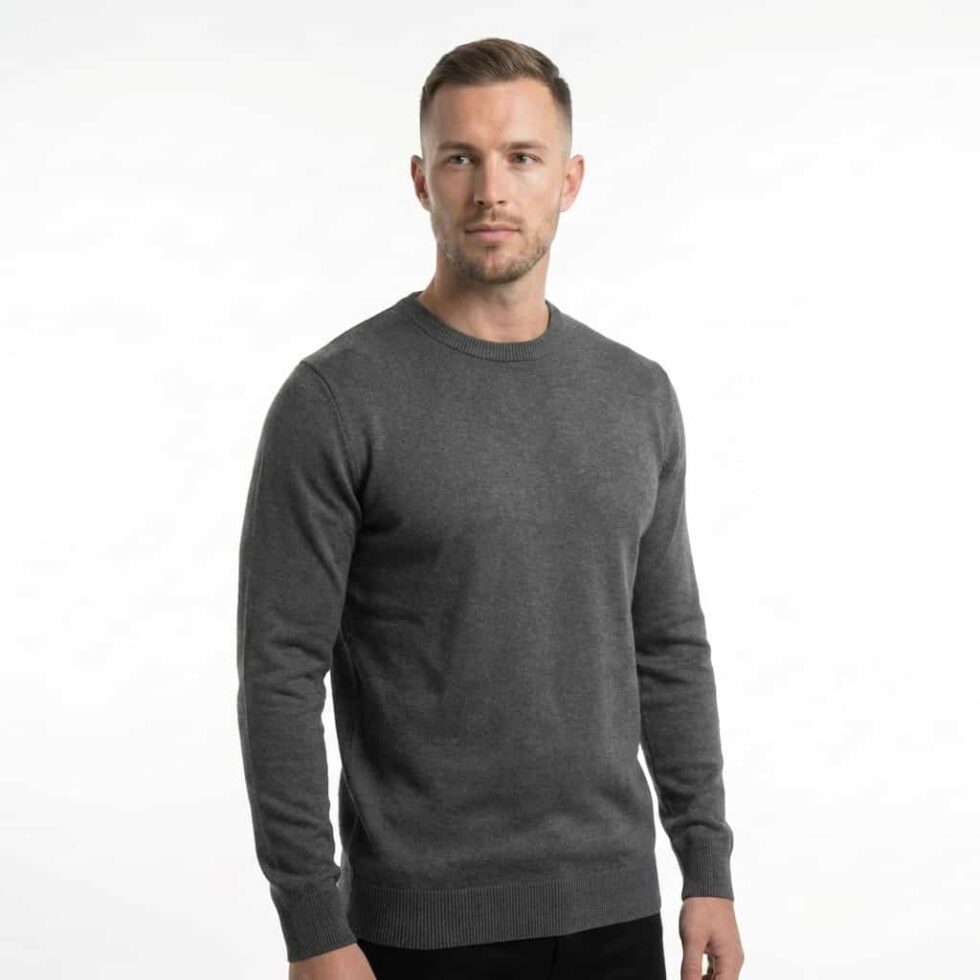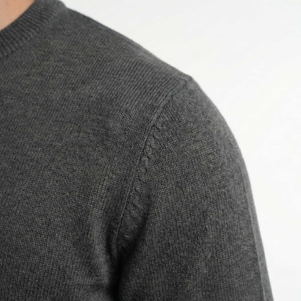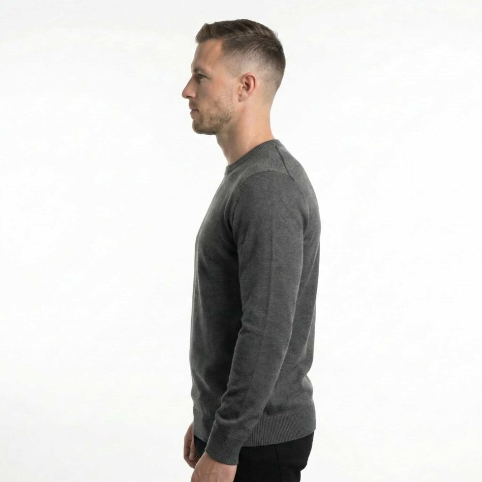 The design centres around a traditional crew neck silhouette, a staple in men’s knitwear that has remained relevant across generations. The neckline sits neatly at the collar, creating a clean and balanced look that complements a wide range of outfits. Its structured yet comfortable shape allows it to be worn on its own or layered over a shirt, making it suitable for varying temperatures and occasions. The charcoal grey colour has been carefully selected to align with UK fashion preferences, offering a neutral, sophisticated tone that pairs easily with most wardrobe staples.